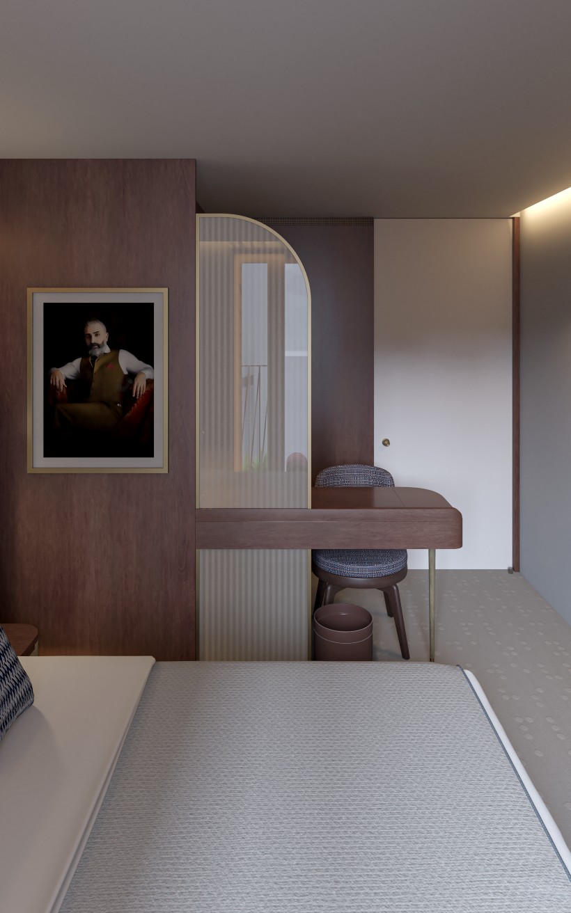 Practicality is approached with a travel-led sensibility, incorporating adaptable furniture and integrated storage. Desks are designed to convert into dressing tables or chess tables, complemented by concealed lighting that creates a relaxed, intimate atmosphere. Each room includes a banker’s lamp and a window seat overlooking Mayfair. Lighting was supplied by Apparatus, the New York-based studio with a London showroom on Mount Street, reflecting the long-standing relationship between Shepherd& and the many connections established by Timothy Shepherd and his team throughout the project.