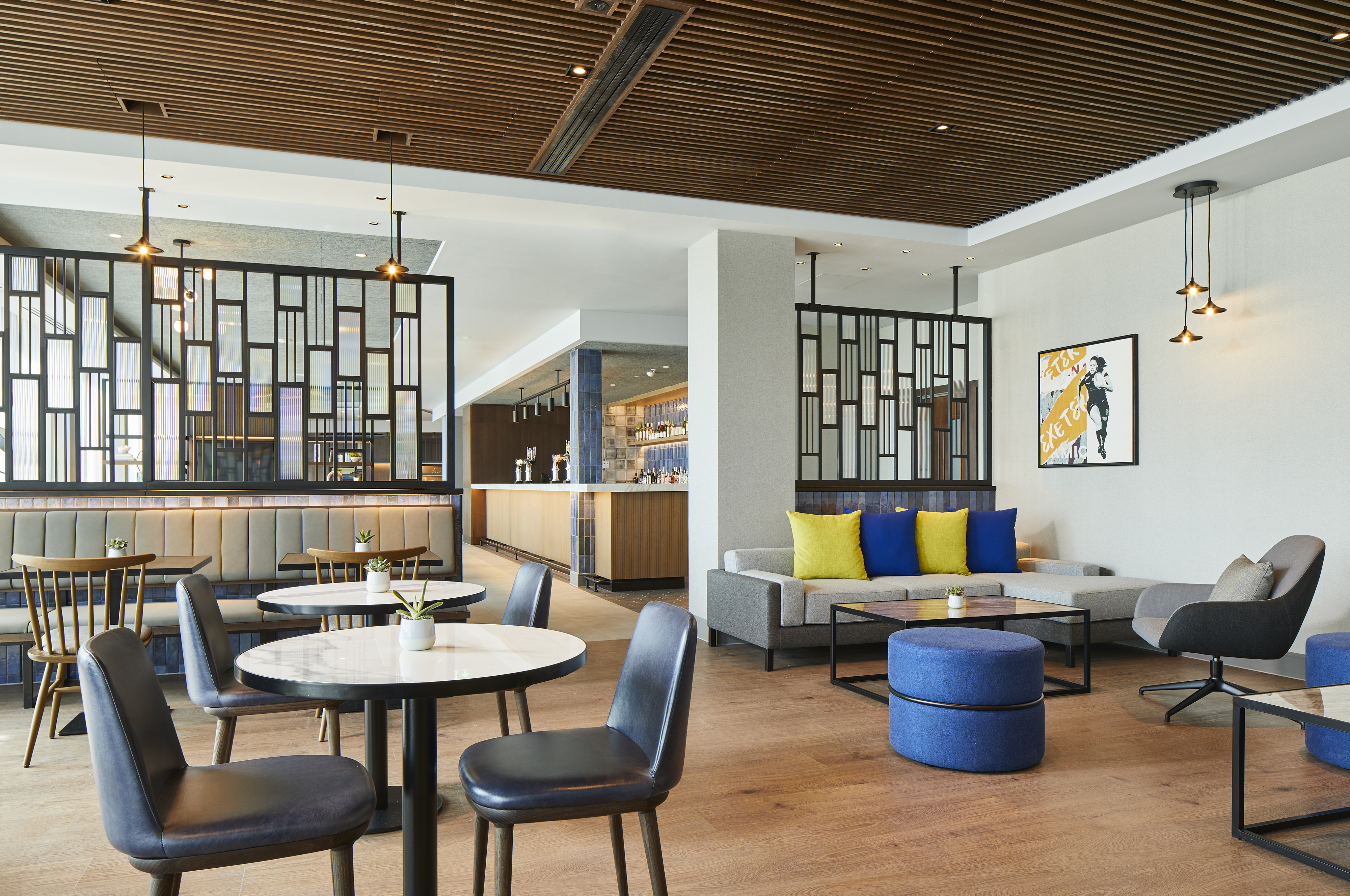 Led by London-based interior design company Twenty2 Degrees, the design of the hotel offers a contemporary look and feel that speaks to the Courtyard by Marriott’s ambitious and enterprising guests. The modern furnishings, complete with timber walls and blue hues create a comfortable and welcoming ambiance. The artwork, figurines and carpet design throughout the hotel are an ode to the hotel’s famous neighbour, the Exeter Chiefs rugby club.