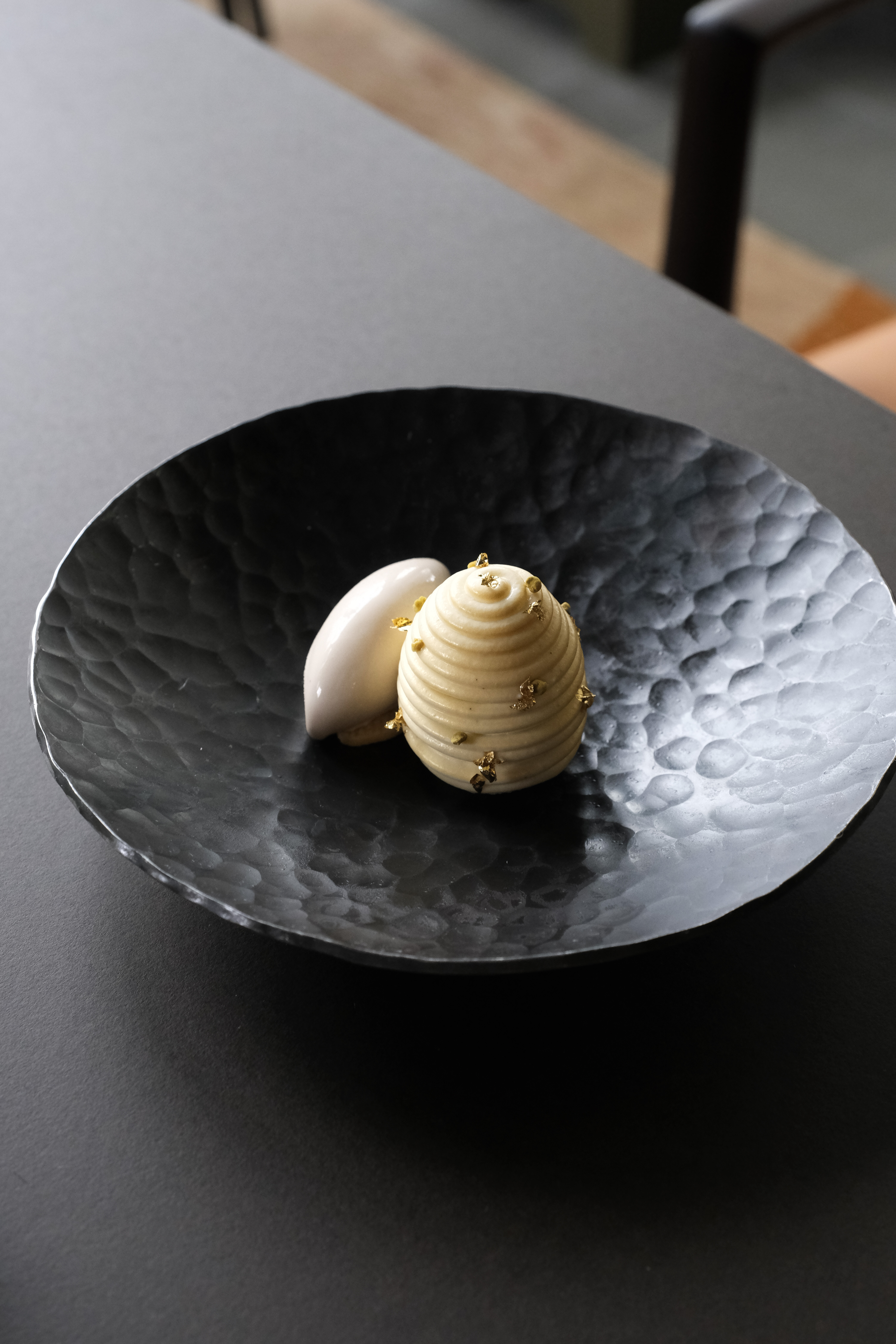 An eye-catching set of sculptures inspired by the Coworth Park gardens sits at the entrance of Woven by Adam Smith. Past these, guests will be welcomed into an impressive new wine room and pantry, with two floor-to-ceiling wine cellars, holding a unique curation of bottles. The culinary journey will begin with a selection of snacks served from the pantry including devilled egg; caviar, smoked roe, pine; Coronation chicken; andcured seabass, XO sauce, kalamansi, seaweed. Welcome drinks will pair seamlessly with Adam’s menu and introduce guests to a list that celebrates British wines alongside library vintages from some of the best producers around the world, and cocktails that use storied, sustainable British spirits from Sapling.
