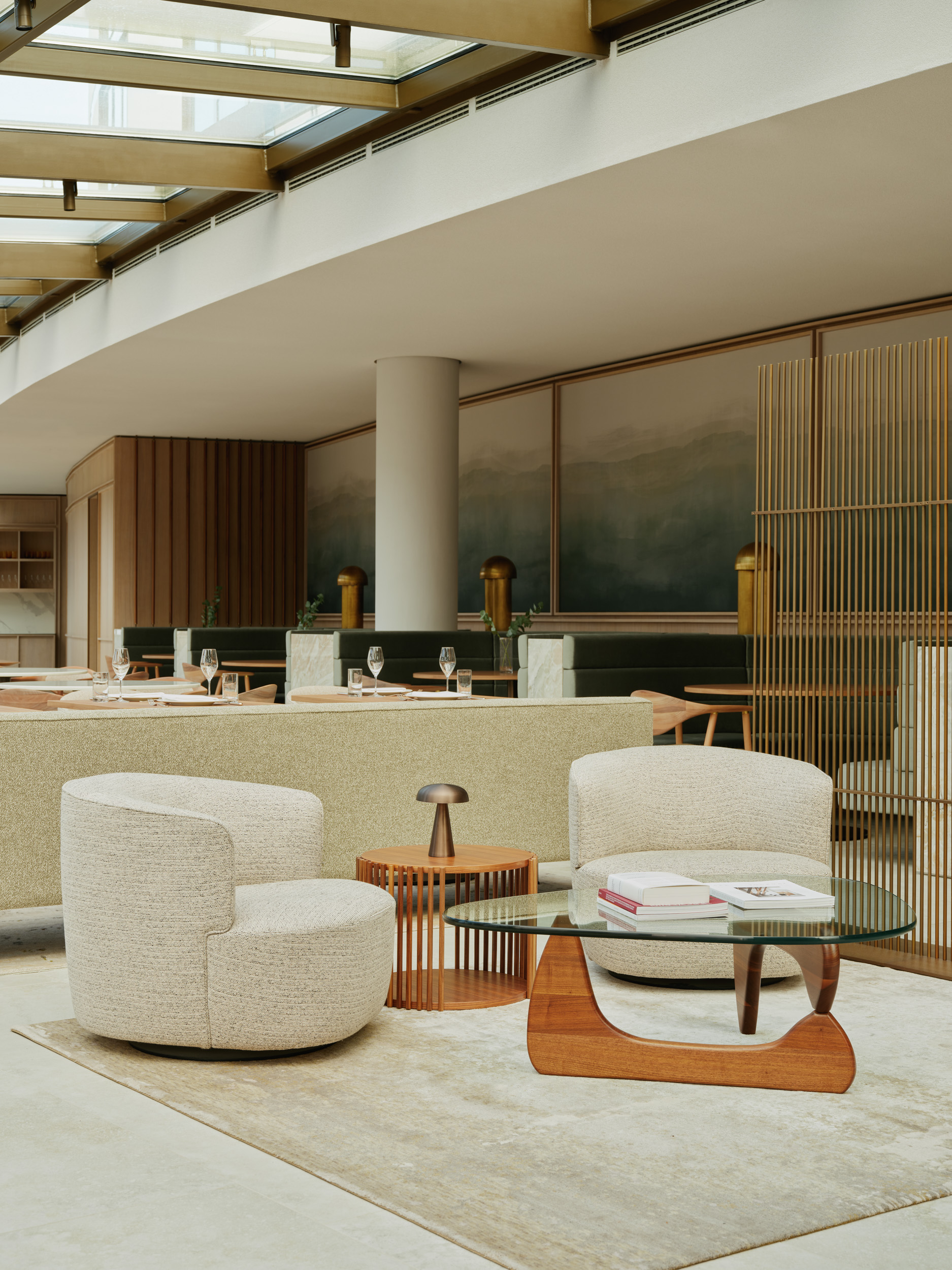 The Aura Restaurant showcases HENN’s Interior Design expertise, upcoming interior projects include the Google Office in Berlin, Serviceplan House of Communication in Munich, and the Baramundi Headquarters in Augsburg..