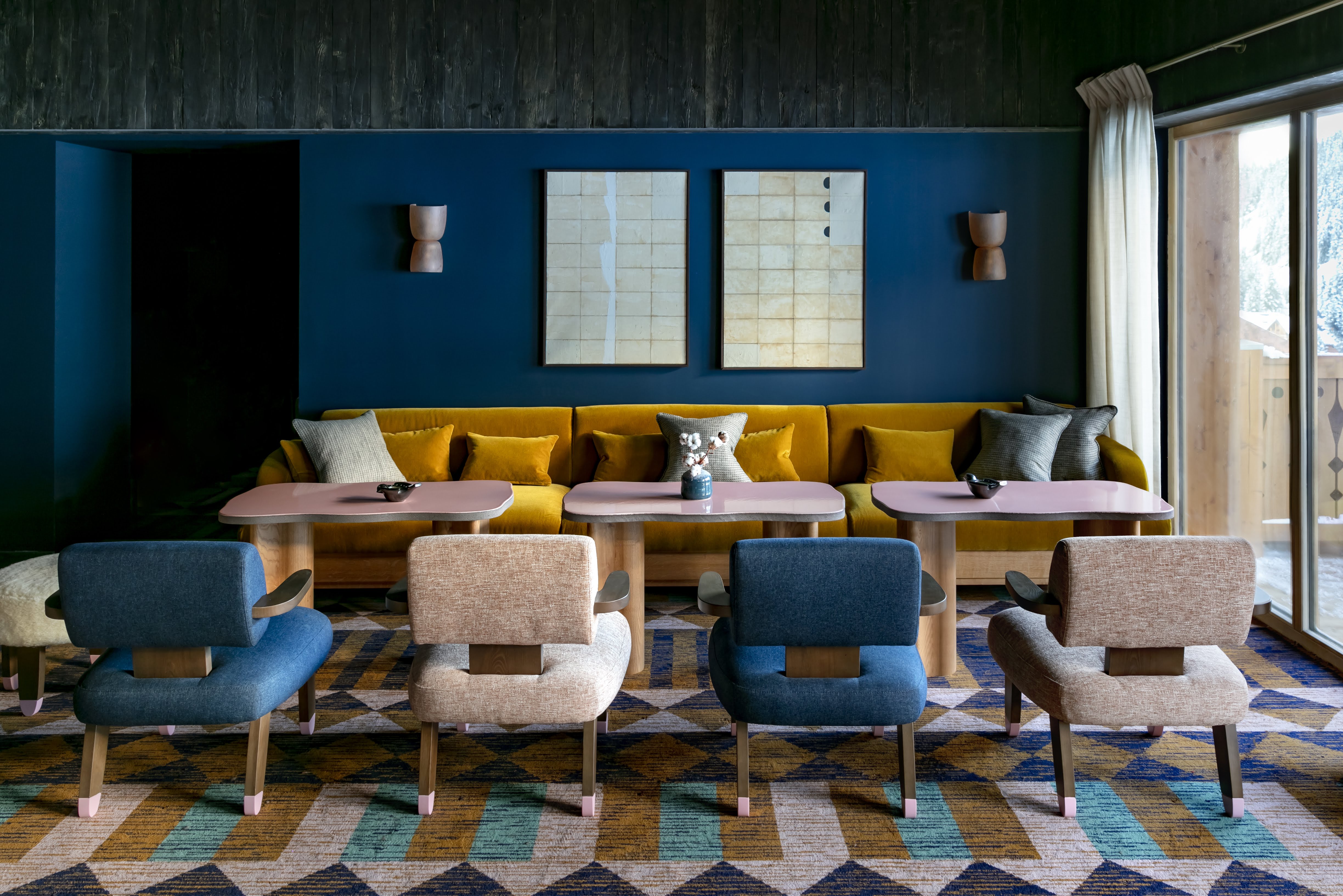 The hotel’s indoor and outdoor pool, six massage treatment rooms with specialist treatments from Tata Harper and a sauna area offer guests a deeply relaxing experience after a day of skiing. The pool areas, divided by a bay window create a stunning, trompe-l’oeil effect with views of the striking vista outdoors. State-of-the-art fitness equipment, boxing facilities and a dedicated space for Pilates and yoga all offer panoramic views across the peaks.