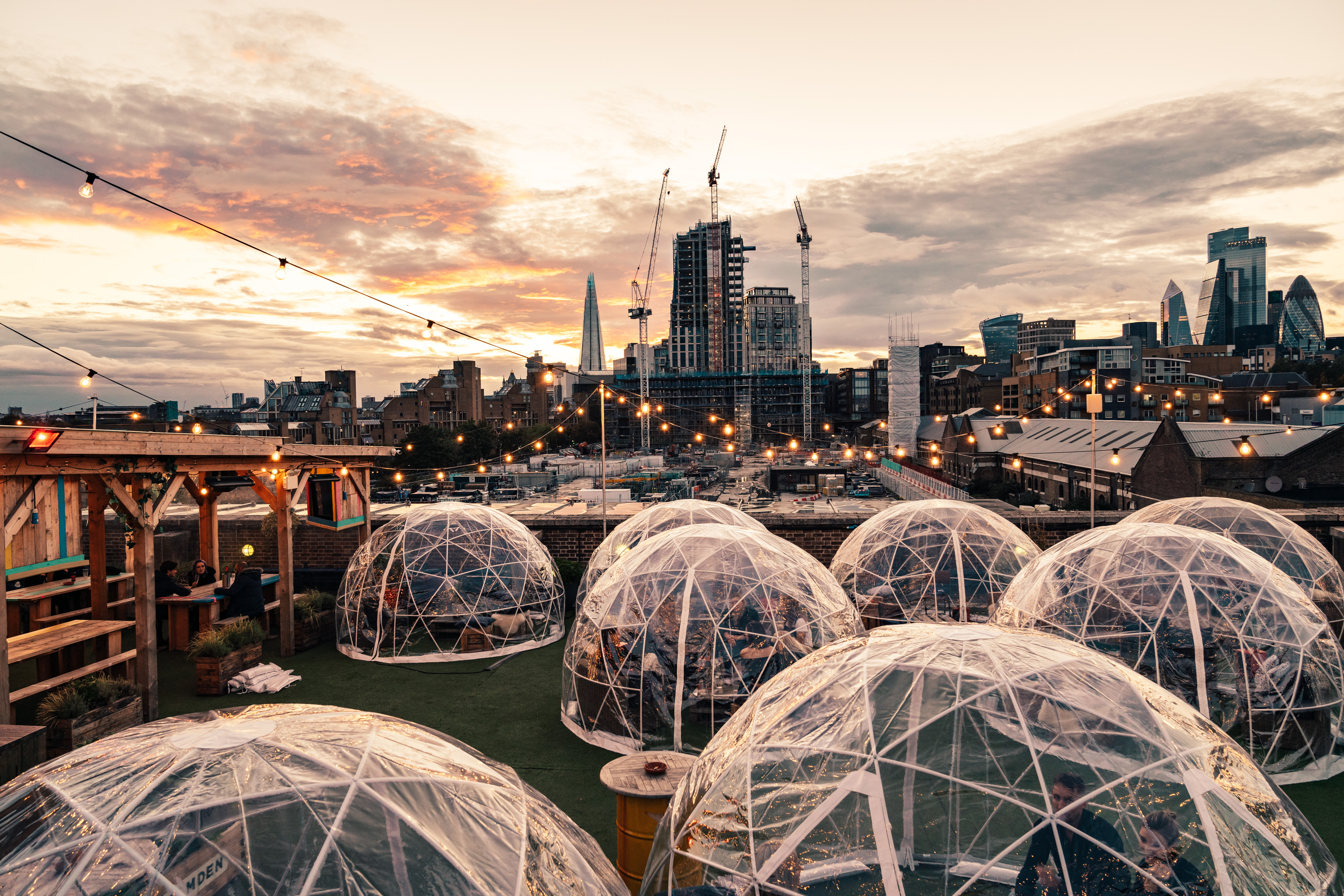 Open-air heated tables and igloos at Skylight Rooftop