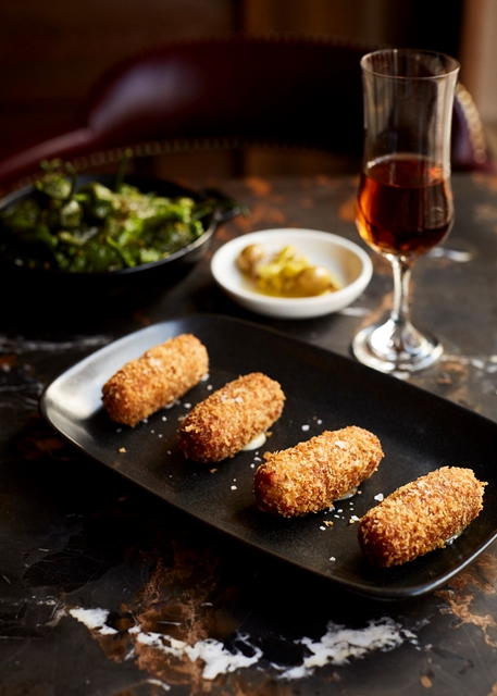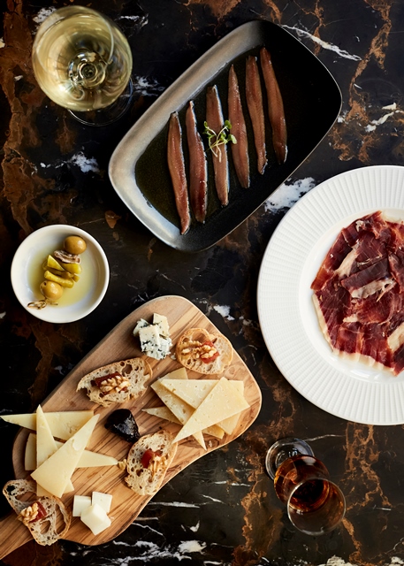 Tapas, hot and cold, includes classics like: Pan de cristal (signature bread topped with tomato and Spanish extra virgin olive oil), Gambas al ajillo (king prawns in garlic and chilli), slices of 100% Iberian jamon and Arroz negro (creamy black rice, baby squid and garlic saffron alioli). There are croquettes filled with Payoyo cheese and spinach, Patatas bravas in secret house-smoked sauce, runny Tortilla Espanola and Regional cheeses served with quince, walnuts and Gallego bread.