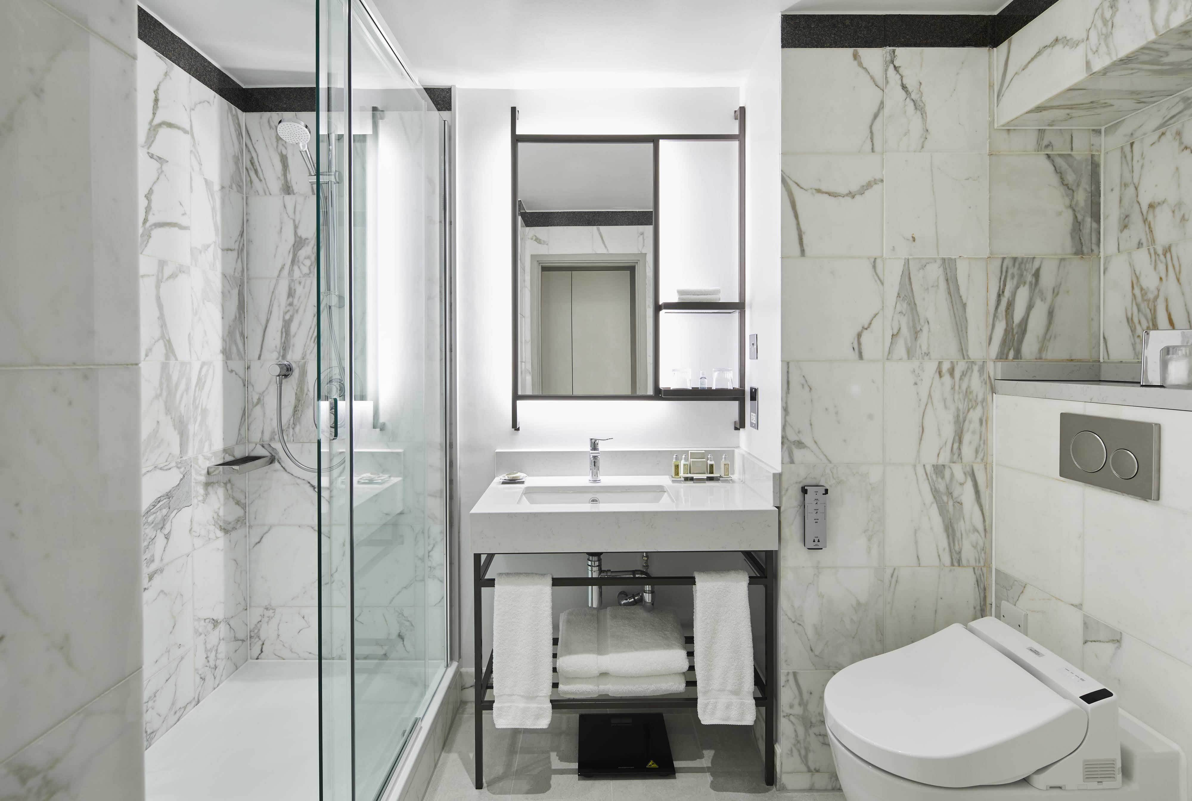 The refurbished guestrooms and suites adopt a neutral colour palette featuring rich navy blues and crisp whites complemented with grey accents in varying textures and finishes. Each guestroom and suite offers a stylish desk in a modern room setting for guests to work in and inspire brilliance. In the bathrooms, guests will admire innovative design details, spacious overhead rain showers and contemporary vanity units.