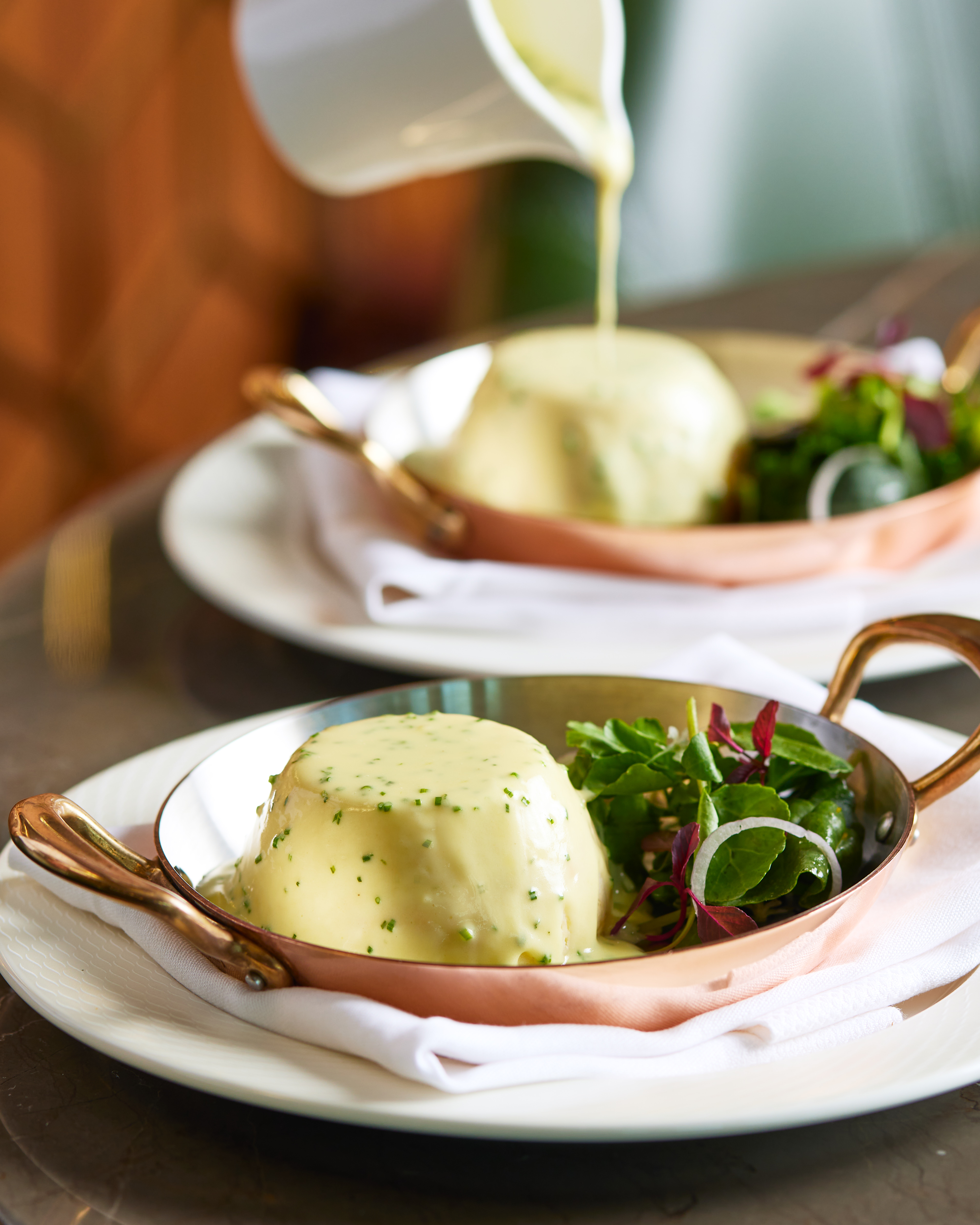 The interior design features robust furnishings with a rich red and forest green colour scheme accentuated by polished walnut hardwood flooring, brass finishes, 24 karat gold leaf hand-placed ceiling and more. Monochrome portraits of British style icons by celebrated photographers Terry O’Neill and Arthur Steel feature The Rolling Stones frontman Sir Mick Jagger, the original 007 Sir Sean Connery, supermodels Jean Shrimpton and Twiggy, line the walls of the main dining room.