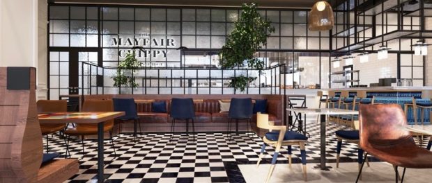 The 3,500 sq ft. 70 cover site will blend classic British character with subtle Middle Eastern influences, pairing checkerboard floors and leather banquettes with warm brass, textured tiles, soft arches, and layered greenery, delivering the same refined, welcoming atmosphere found across the London locations, while being thoughtfully adapted to its local setting.