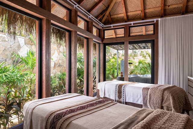 The spa harnesses nature throughout the experience, through the drinks and snacks served in the garden lounge, compresses crafted from local herbs and treatment rooms enveloped by tropical foliage and desert succulents. Guests will discover diverse treatment environments including six well-appointed private rooms with outdoor showers, a couples’ suite with a changing room and steam shower leading to an outdoor soaking tub, a scrub station and seating area, and the Casa Privada: a self-contained spa retreat for groups and special celebrations, with an indoor/outdoor dining and resting lounge, treatment studio, and beauty and grooming annex.